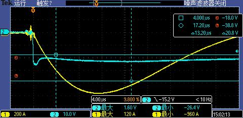 通過實際測試,以下是該器件的殘壓波形: